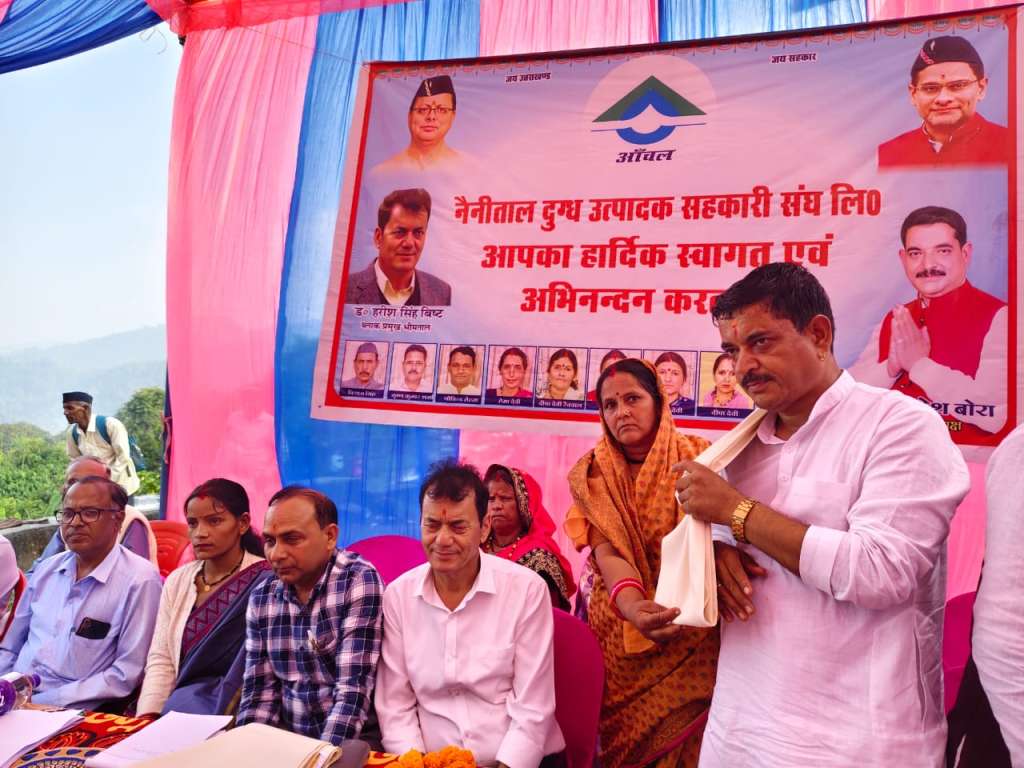 लालकुआ। नैनीताल आँचल दुग्ध उत्पादक सहकारी संघ लिमिटेड के अध्यक्ष मुकेश बोरा की अध्यक्षता में हैडाखान व जमरानी दुग्ध उत्पादक क्षेत्र की 15 समितियों के सामूहिक बोनस वितरण समारोह का भव्य आयोजन किया गया। कार्यक्रम में ग्रामीण दुग्ध समितियों के अध्यक्ष, सचिव एवं प्रतिनिधि बड़ी संख्या में उपस्थित रहे।